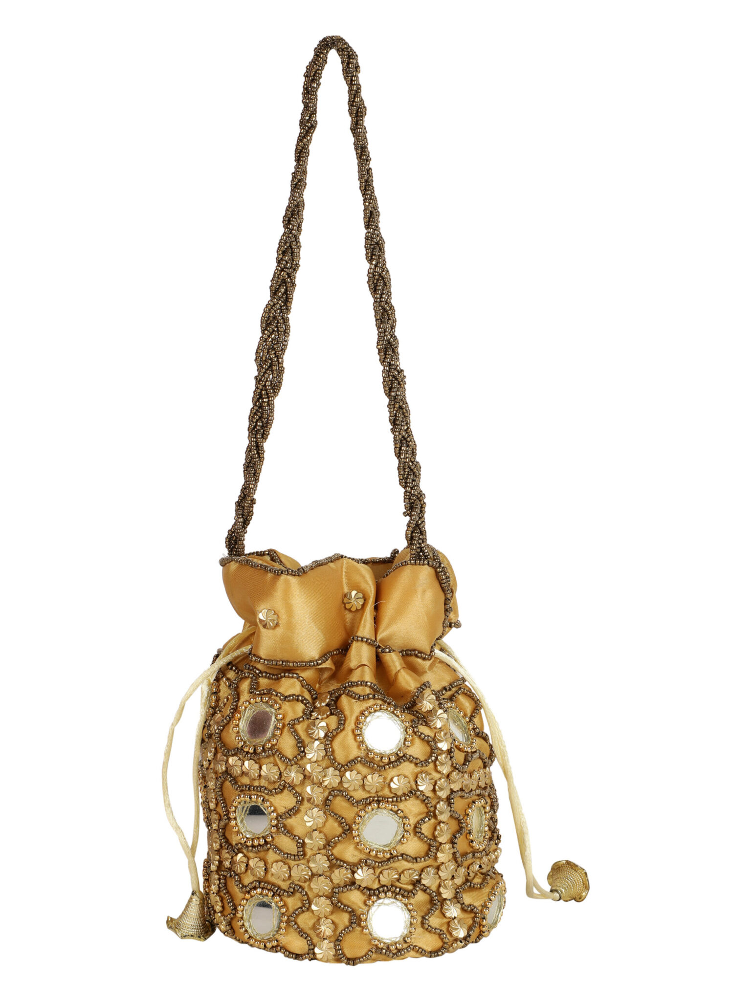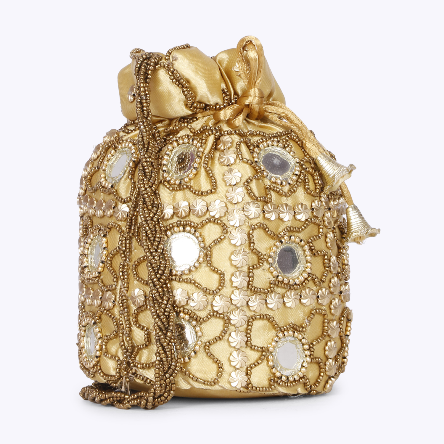 This product is a combo of tow Embellished potli bags having wrist loop 1 main compartment each with drawstring closure. Size & Fit Size of each potli bag : 9 x 9 x 3 Inch (Length x Width x Depth ) Material & Care Fabric Wipe with clean, dry cloth