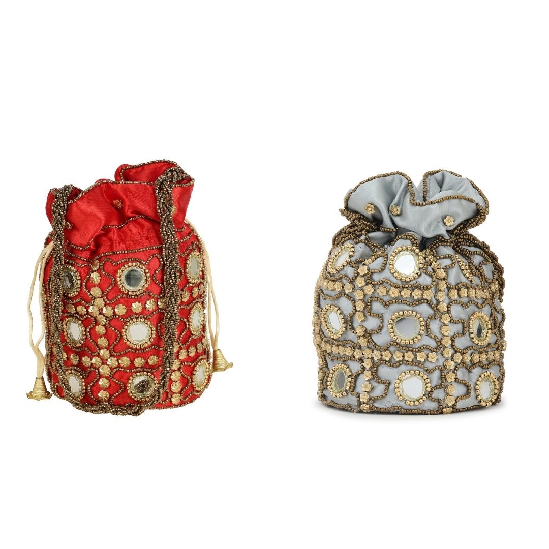 Combo – Designer Embroidered Potli Bag – Red & White