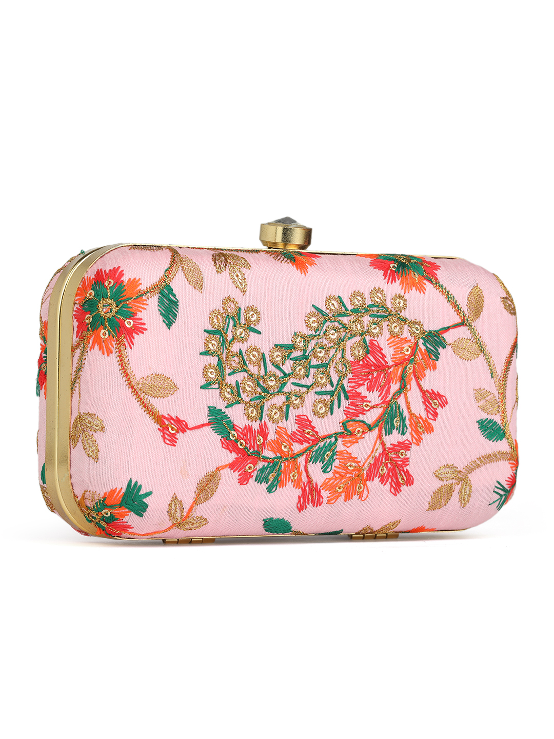 Combo Of Boho Bag And Pink & Green Embroidered Box Clutches For Girls and womens