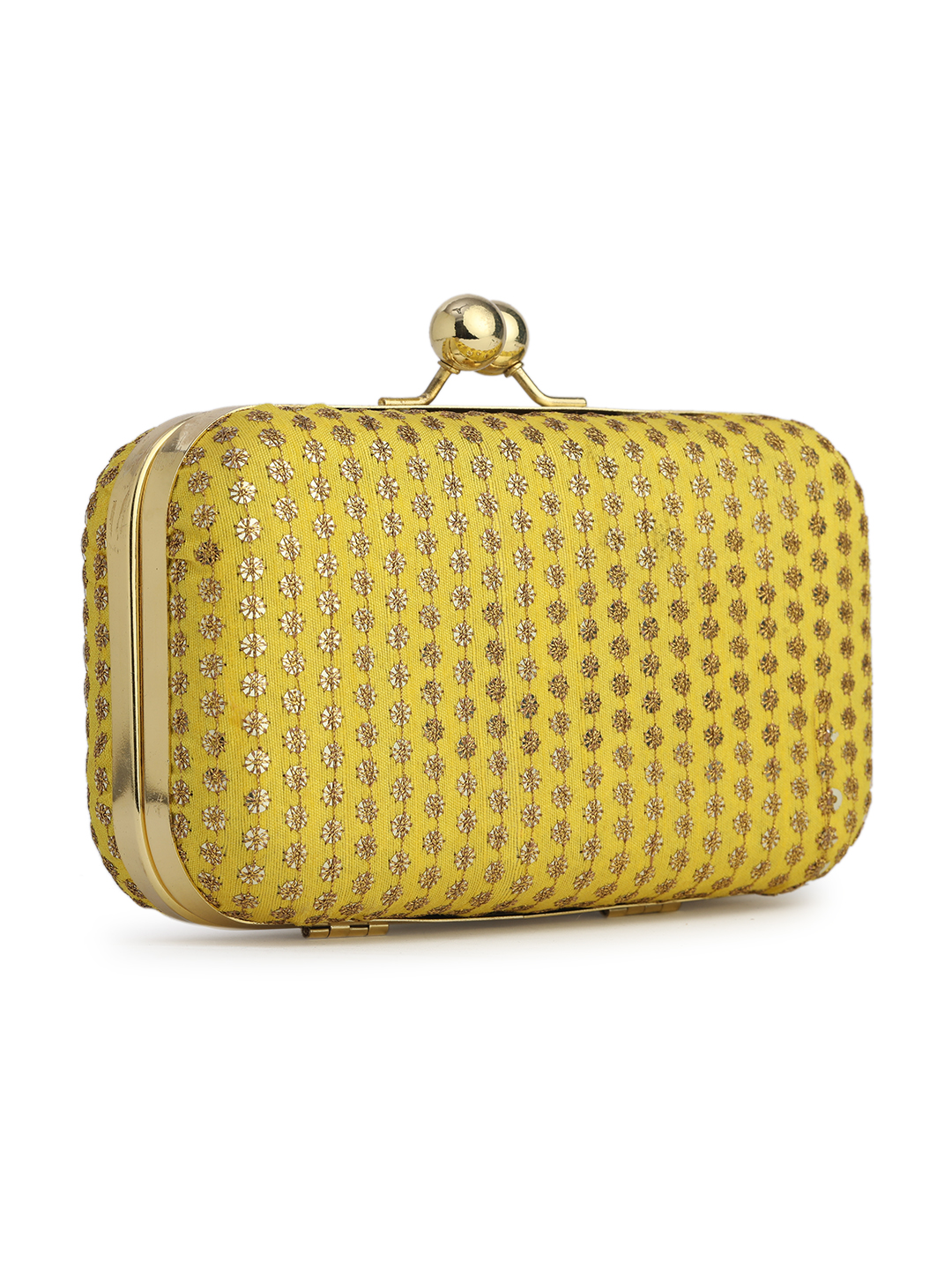 Combo Of Boho Bag And Yellow & Gold Embroidered Box Clutches For Girls and womens