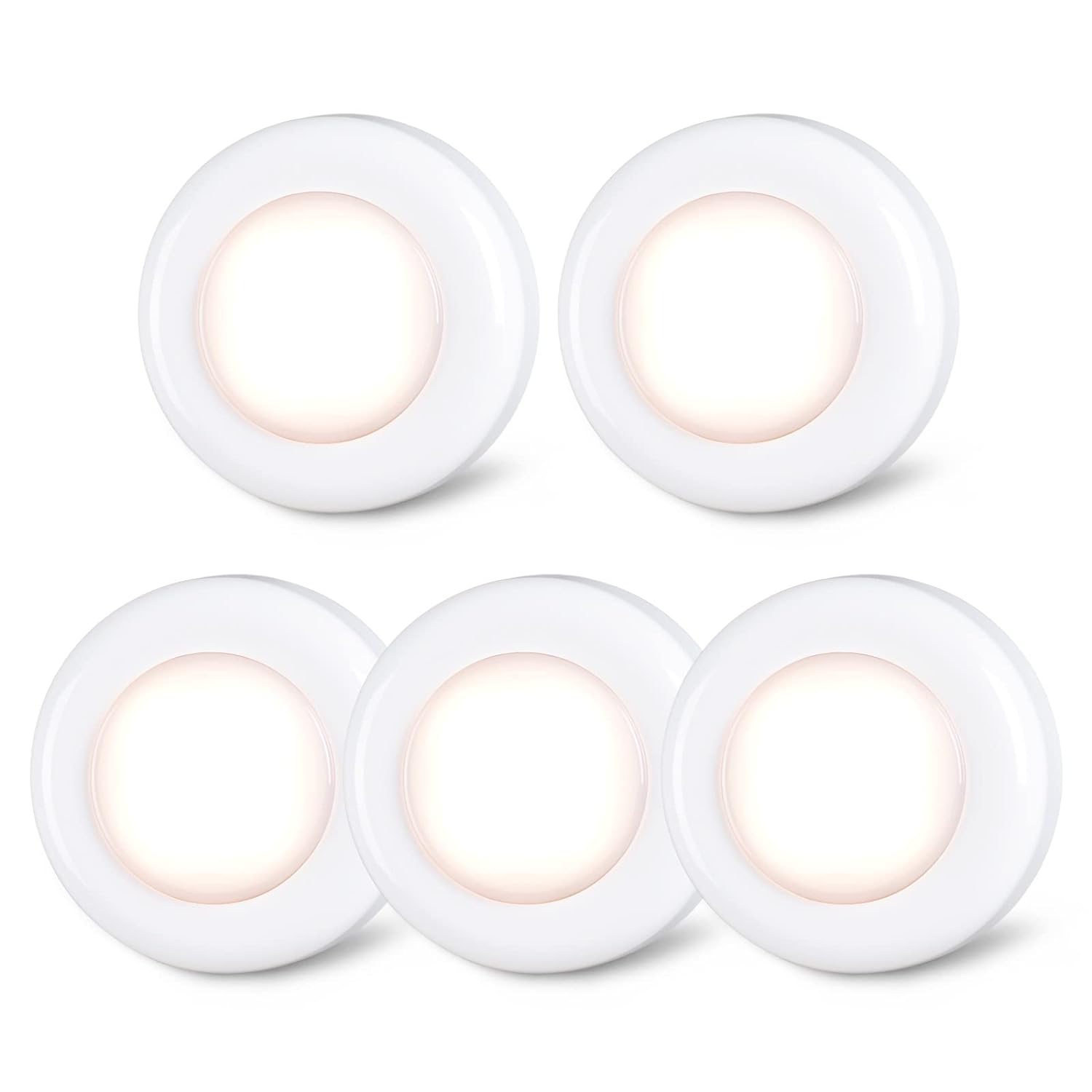Mini Night Touch Light Led Puck Light Portable Under Cabinet Lighting Battery Operated Powered Diy Stick On Lights Wireless Closet Counter Kitchen Warm White 5Pack